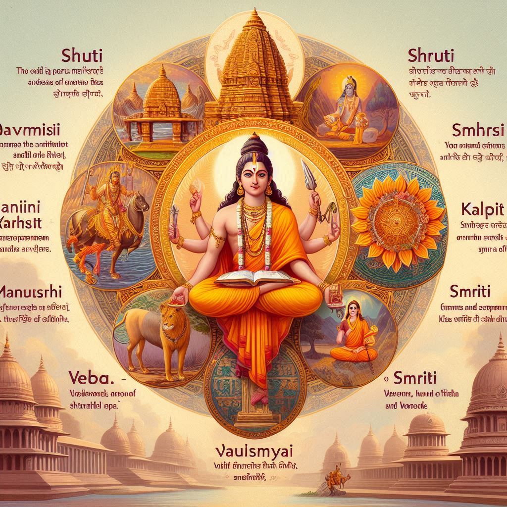 To understand Indian scriptures and Vedic knowledge, the scriptures are divided into two parts: Shruti and Smriti. Shruti includes the scriptures Vedas and Smriti includes books of history and interpretation of the Vedas, Manusmriti, Yajnavalkya Smriti, etc. The Vedas are the symbols of eternal and eternal truth. The Vedas have 6 अंग and 6 उपांग . Which helps in knowing the Vedas. The 6 limbs of the Vedas are Varna Shiksha, Panini Krita व्याकरण (Ashtadhyayi), Kalpa, Maharishi Yaska Krita Nirukta, Maharishi Pingal Krit Chhanda and Jyotish etc. This is explained to you in just a few words. This is to be understood