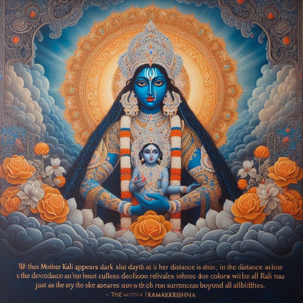 His most illuminating teaching was that Mother Kali appears dark only from a distance, but in the intimate embrace of devotion, She reveals Herself as colorless beyond all attributes. Just as the sky appears blue from afar yet has no color when one is immersed within it. Sri Ramakrishna taught that to truly know Kali Maa, one must surrender completely at Her lotus feet. She is not merely a symbol but the living presence of love, power, and absolute truth. Through his life and ecstatic visions, he demonstrated that Mother Kali’s grace flows most abundantly to those who approach Her with the innocent trust of a child calling for its mother.